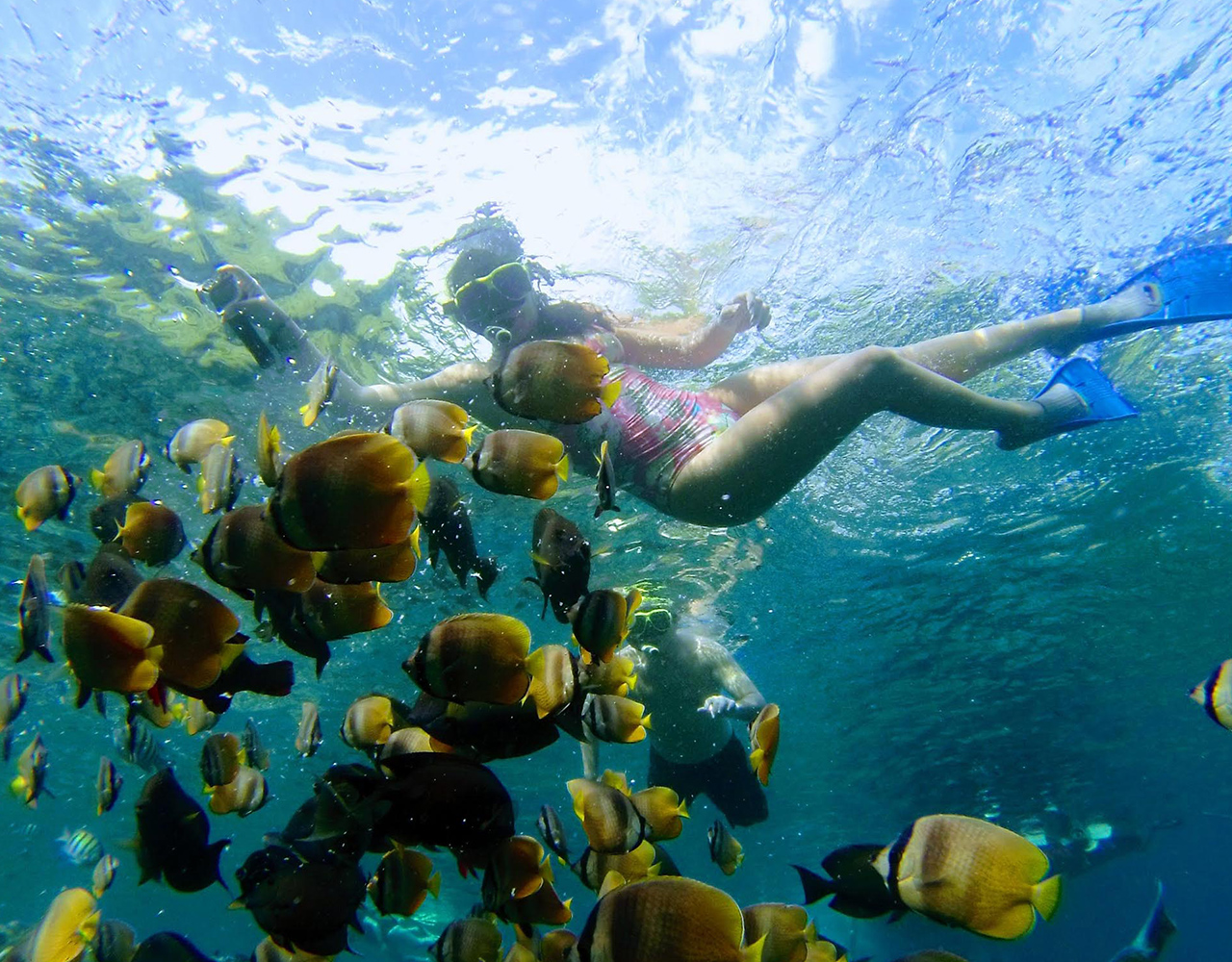 Use a private snorkeling boat and be accompanied by an instructor. Go to Manta Bay for snorkeling and if you are lucky, see mantas. Then, go to Gamat Bay to see the beauty of the coral reef and the colorful small fish.